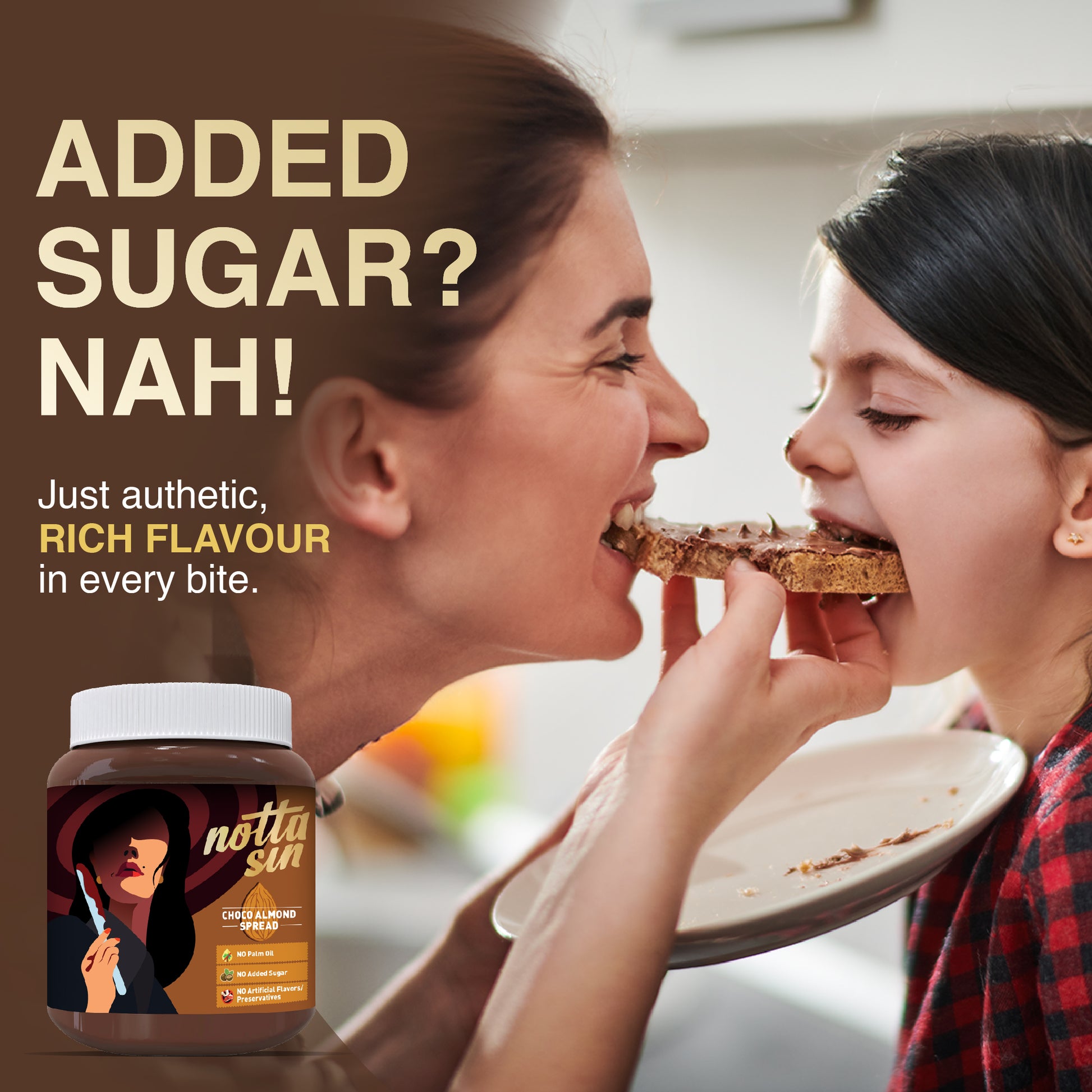 No Added Sugar: All forms of sugars like refined sugar, dates, honey, or jaggery, harm the body in the same way. So, skip the sugars! Enjoy our choco almond spread sweetened with zero-calorie sweeteners like exotic monk fruit & natural stevia.