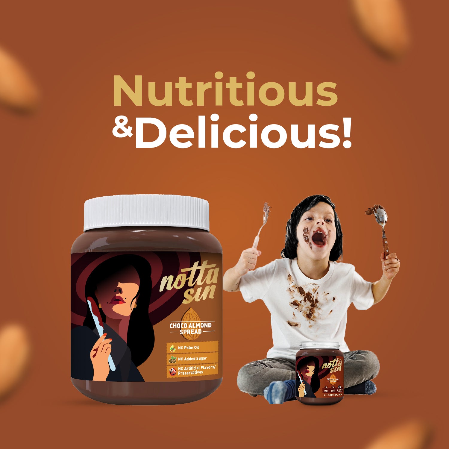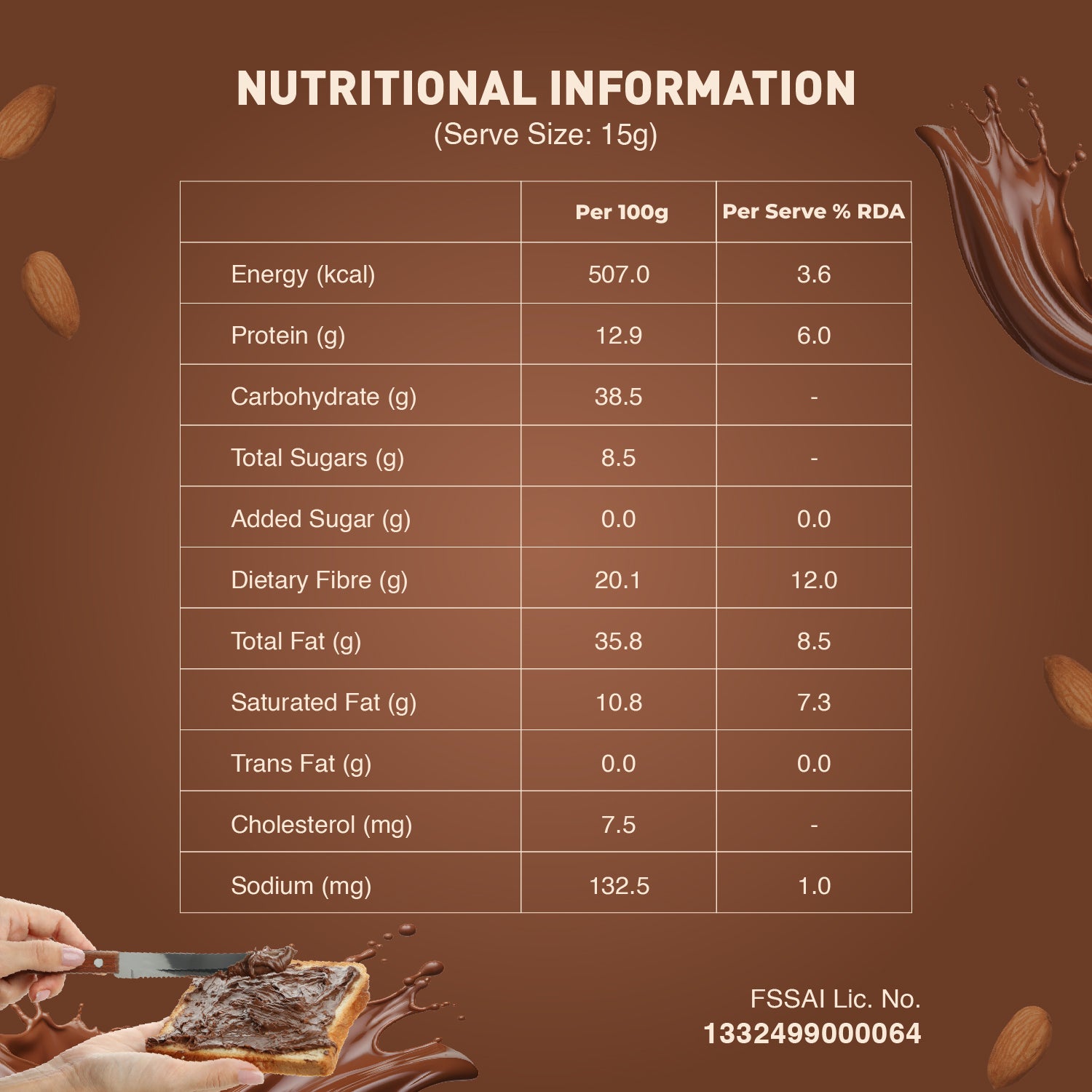 Rich Choco Spread: Luscious creamy chocolaty spread that simply melts in the mouth. Dive into guilt-free indulgence with our creamy choco spread, with 30% more premium cocoa (compared to leading products in the market) and 15.1% nutritious almonds