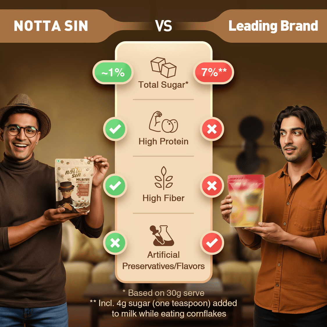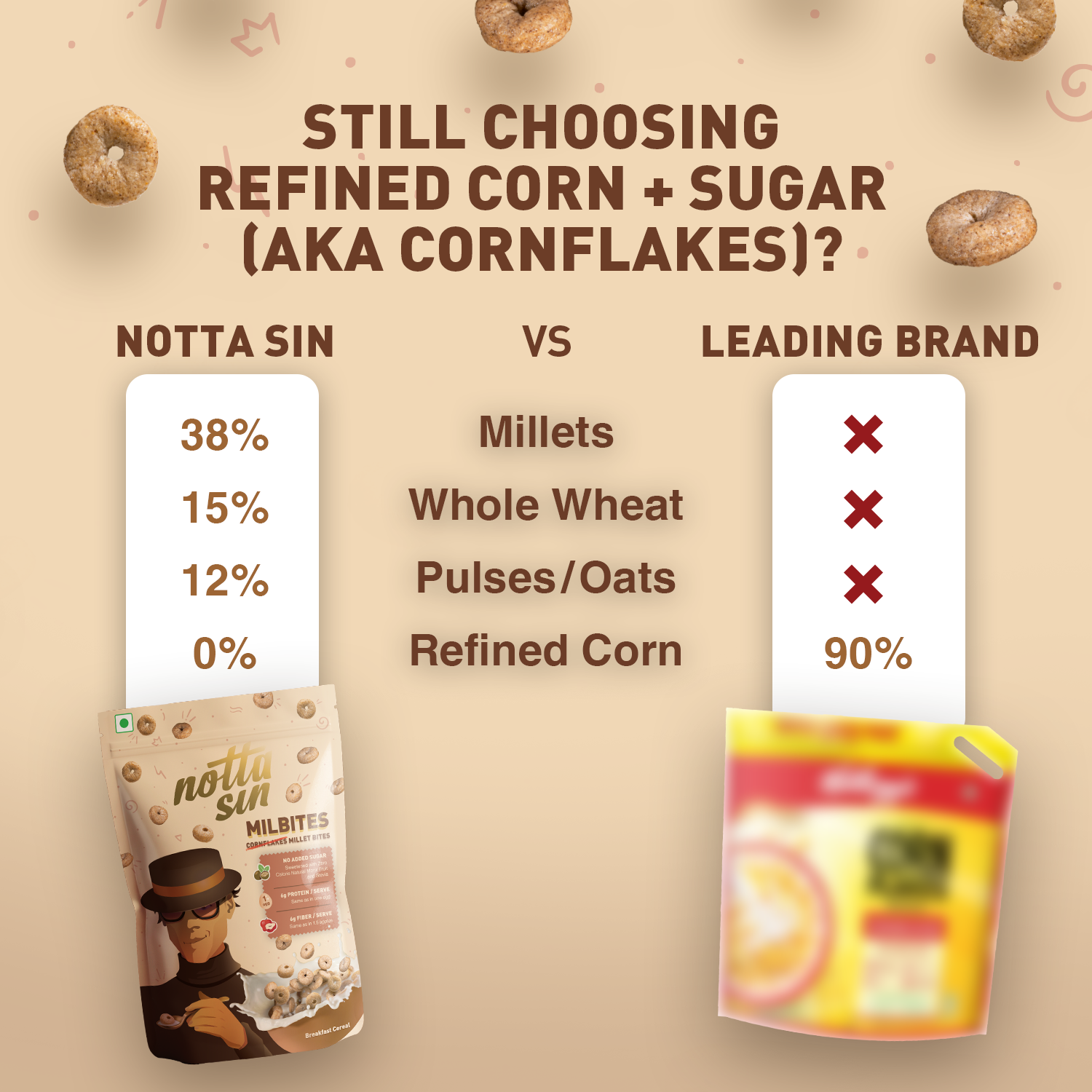 ๐พ Made with millets & wholegrains No refined corn + sugar (aka cornflakes)! Taste the Crunchy millet bites with the power of Indian superfoods.