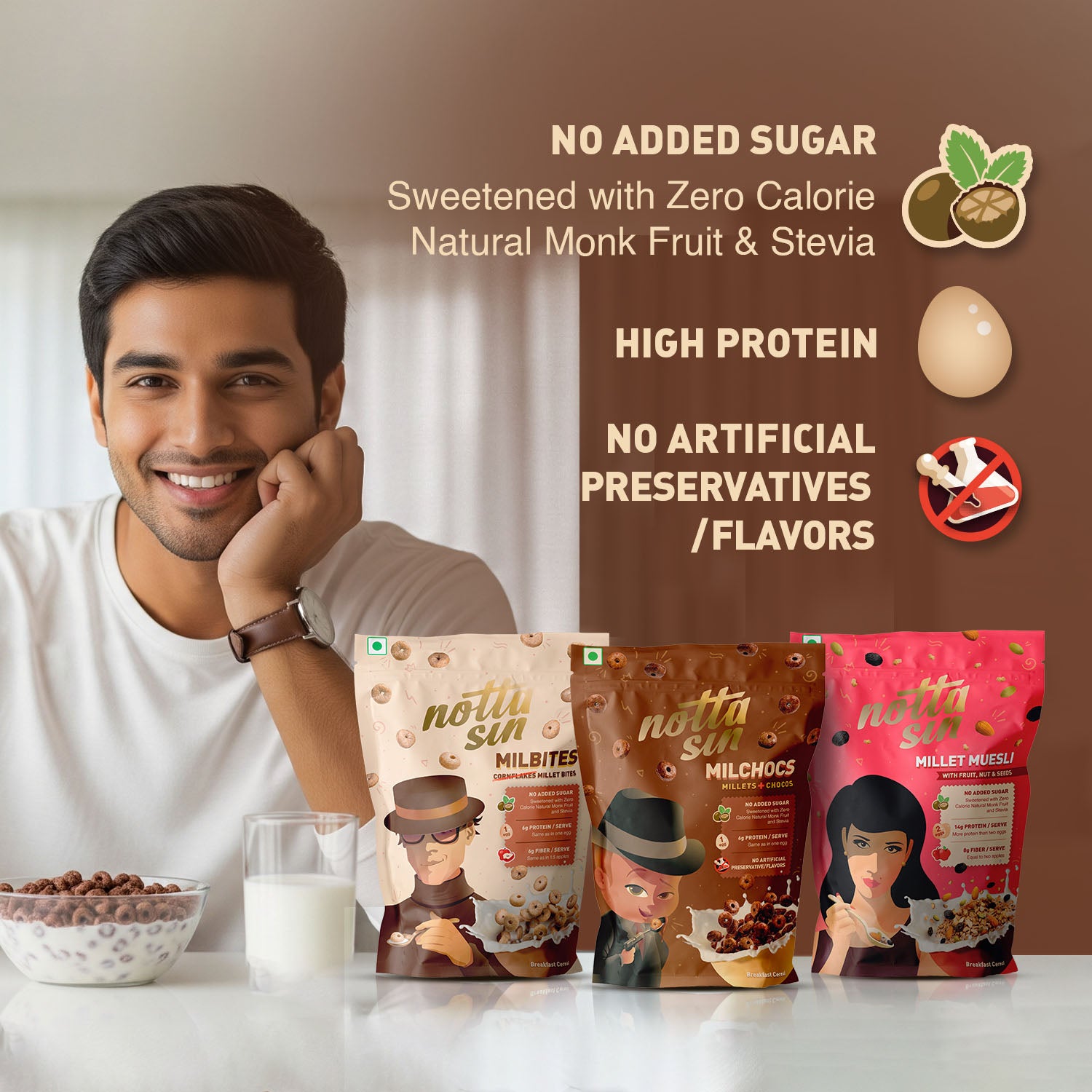 Triple Treat- MilChocs, MilBites & Millet Muesli FNS